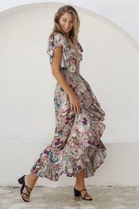 Spend your days in this divine Carmen wrap maxi dress. Made from super soft rayon fabric and featuring the leg-loving split this dress is too good to be true.