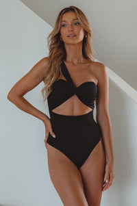 Feeling confident on vacation is easy wearing our sweeping one shoulder Ibiza Swimsuit.