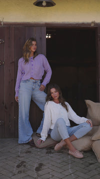 Crafted from soft, breathable cotton knit, this cozy layer features intricate cable and pointelle detailing, a flattering cropped hem, and a relaxed fit that drapes effortlessly. The front is finished with tonal buttons for a seamless, elevated look.