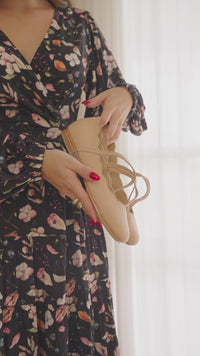 Designed with our signature scallops, these wrap-around flats evoke timeless ballerina elegance. Handmade from genuine leather with a flattering almond toe and delicate ankle straps, they strike the perfect balance between elegance and comfort.